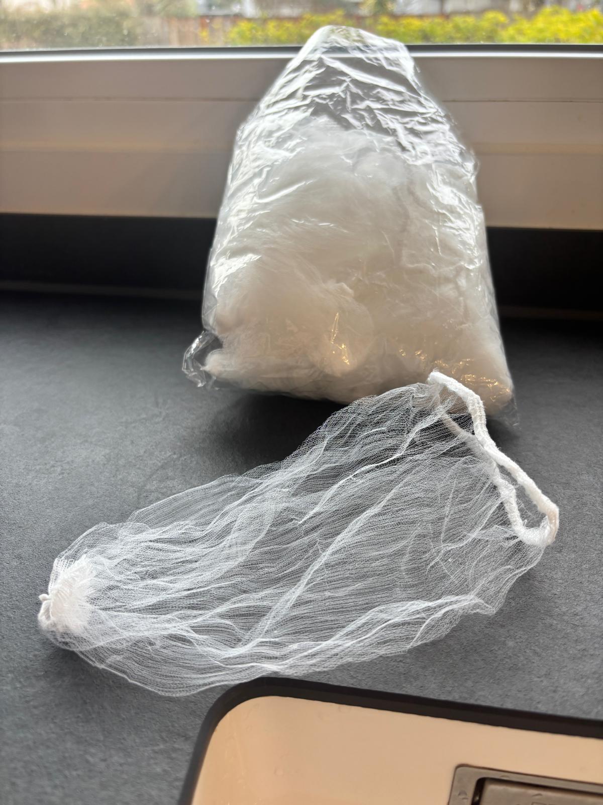 Die Filter-Bags bestehen aus Polyester, einem feinen, wasserbeständigen Netzmaterial, das zuverlässig Essensreste auffängt, während Wasser ungehindert abfließen kann.